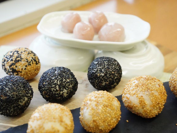 4月14日(日) 講師: 上級食育アドバイザー 晴澤雪枝先生~お花見スイーツ~ ・2種のごま団子&いちごのあんこ玉 |