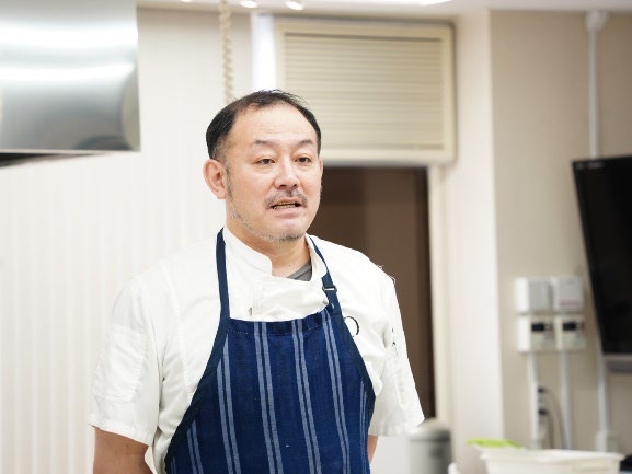 4月10日(水) 講師: 日本料理「ひで蔵」親方 山口秀治先生~包丁技🔪を!~ ・大根の桂むきで砧巻き ・野菜たっぷりさつま揚げ |